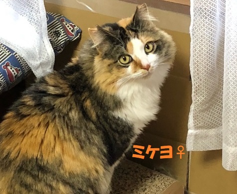 1才から2才位。モフミちゃんと同じ環境で野良生活。同じお母さんから産まれたらしいと。ミケヨちゃんがお姉さんだそうです。フワフワのモフモフです。性格はのんびり屋のビビりさんで家猫修行中。長い目で見てくださる方希望します。野良生活が長かったので外の記憶はまだしっかりあると思いますので脱走対策は必要です。